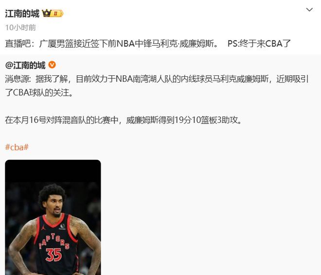 这个马利克·威廉姆斯之前曾多次被传出即将加盟广东队,也是广东球迷最心心念念的内线强力大外人选,没想到马利克最终是被广厦给截胡了,对于广东队来说,打击可是不小。