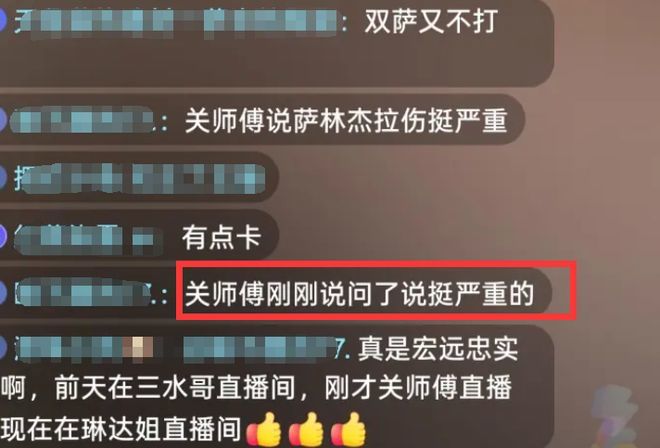 和吉林比赛赛前,有球迷在直播间问了关辛关于萨林杰何时能复出的消息,关辛的回复是:萨林杰拉伤挺严重的,复出时间未定。
